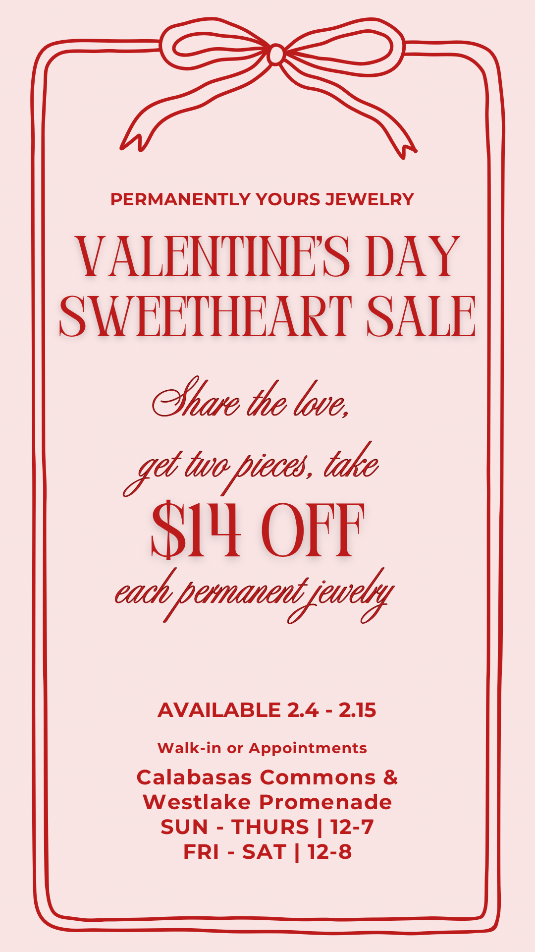 From the 4th to the 15th of February, bring someone special and both get 14$ off on your Permanent Jewelry!