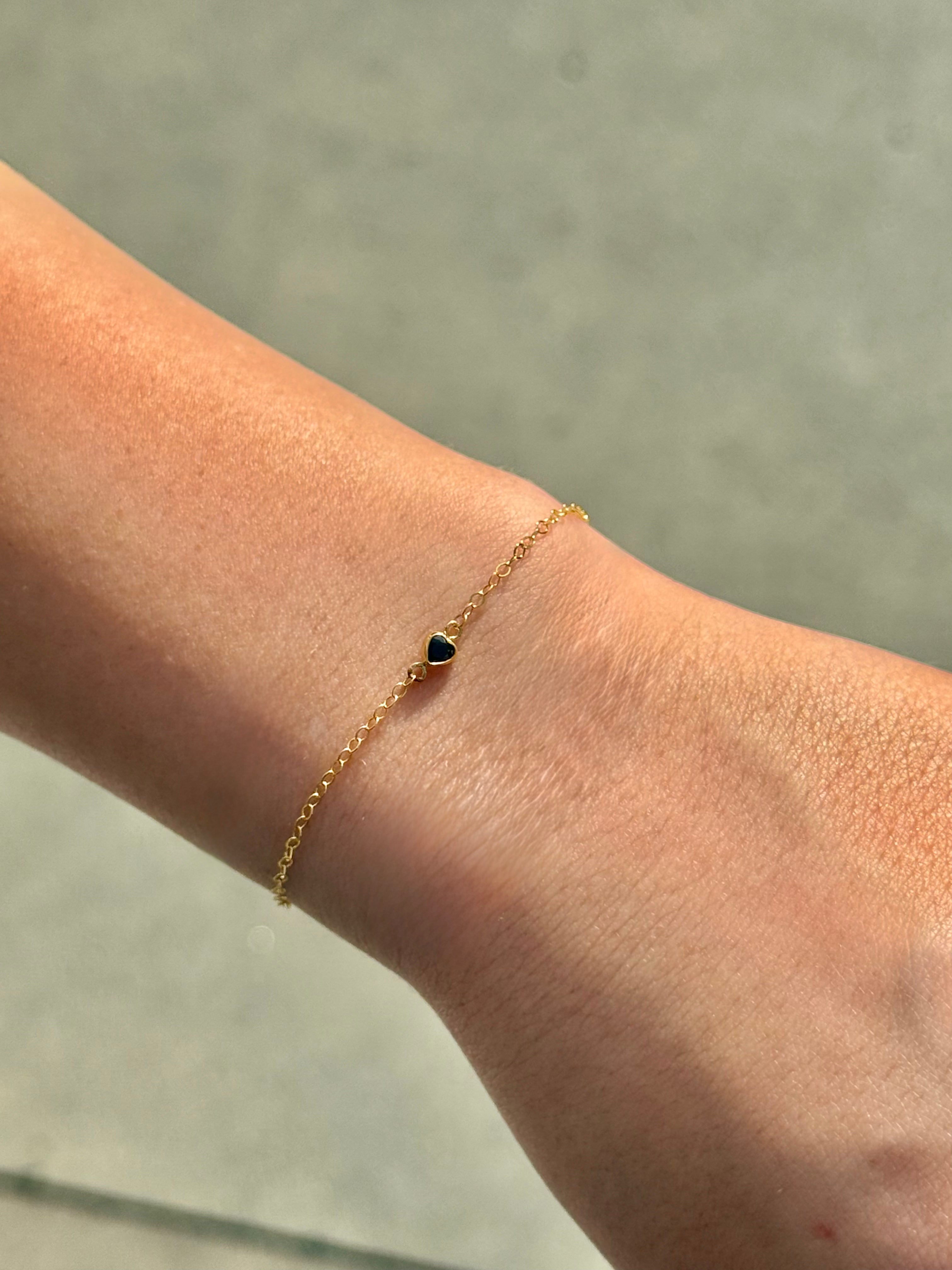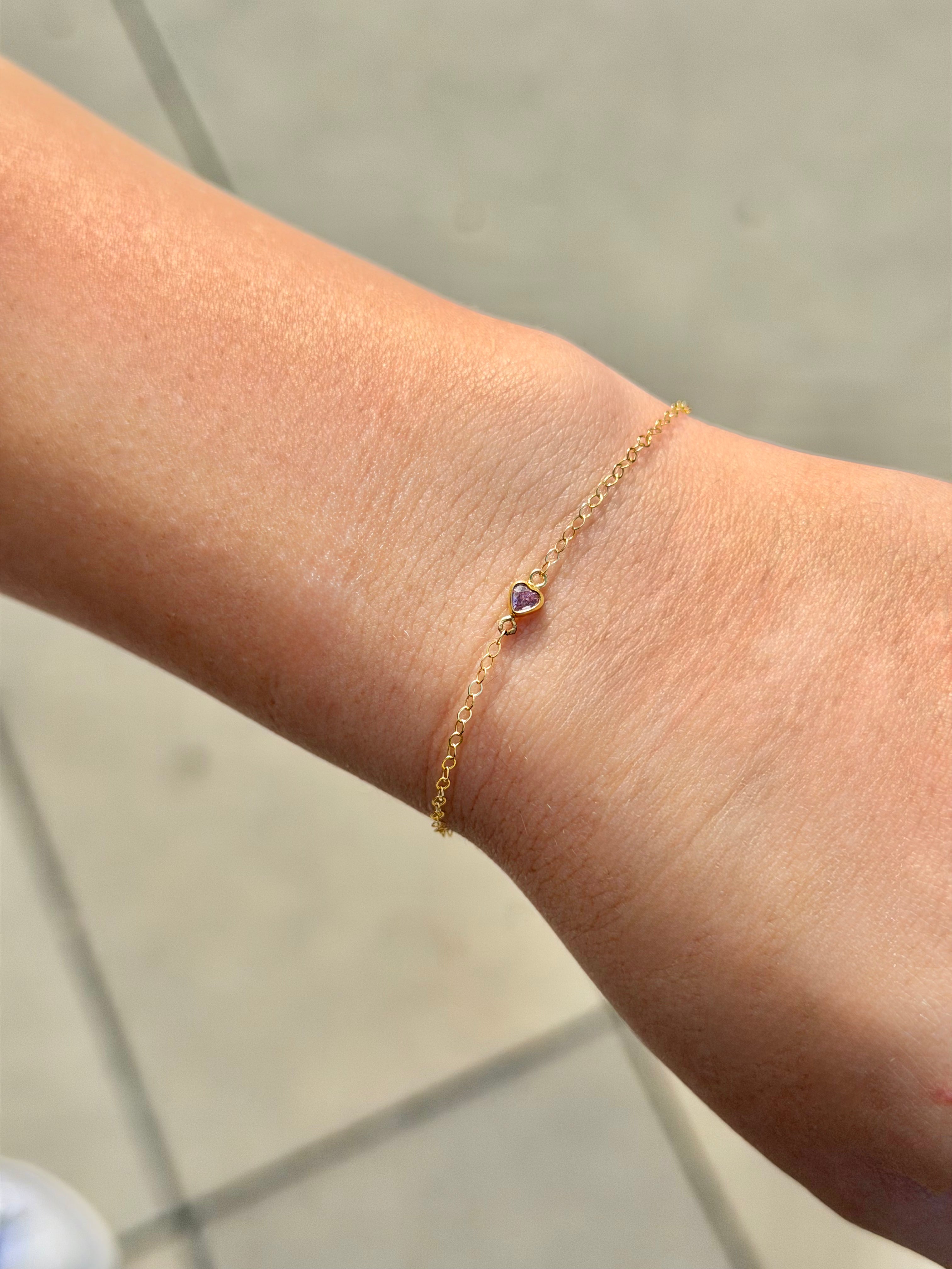 14k gold filled Birthstone heart bracelet - NON tarnish - Hypoallergenic Gold bracelets for Woman - Size 6.5-7.5 inch. Choose your birthstone or favorite color
