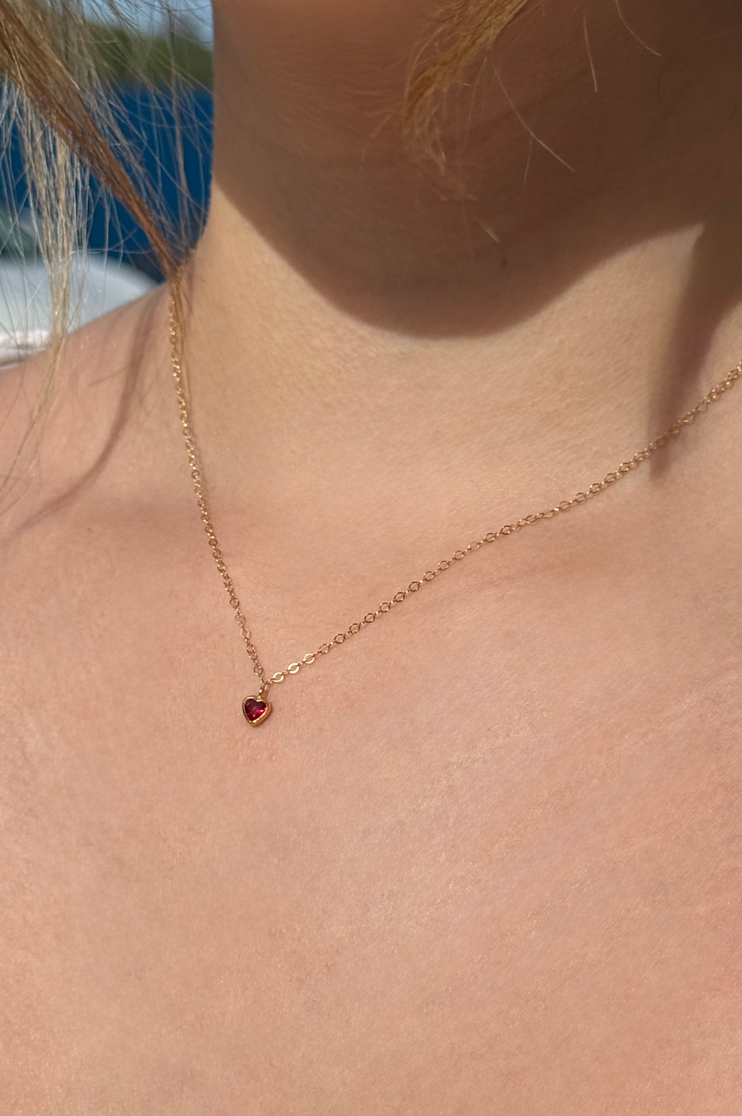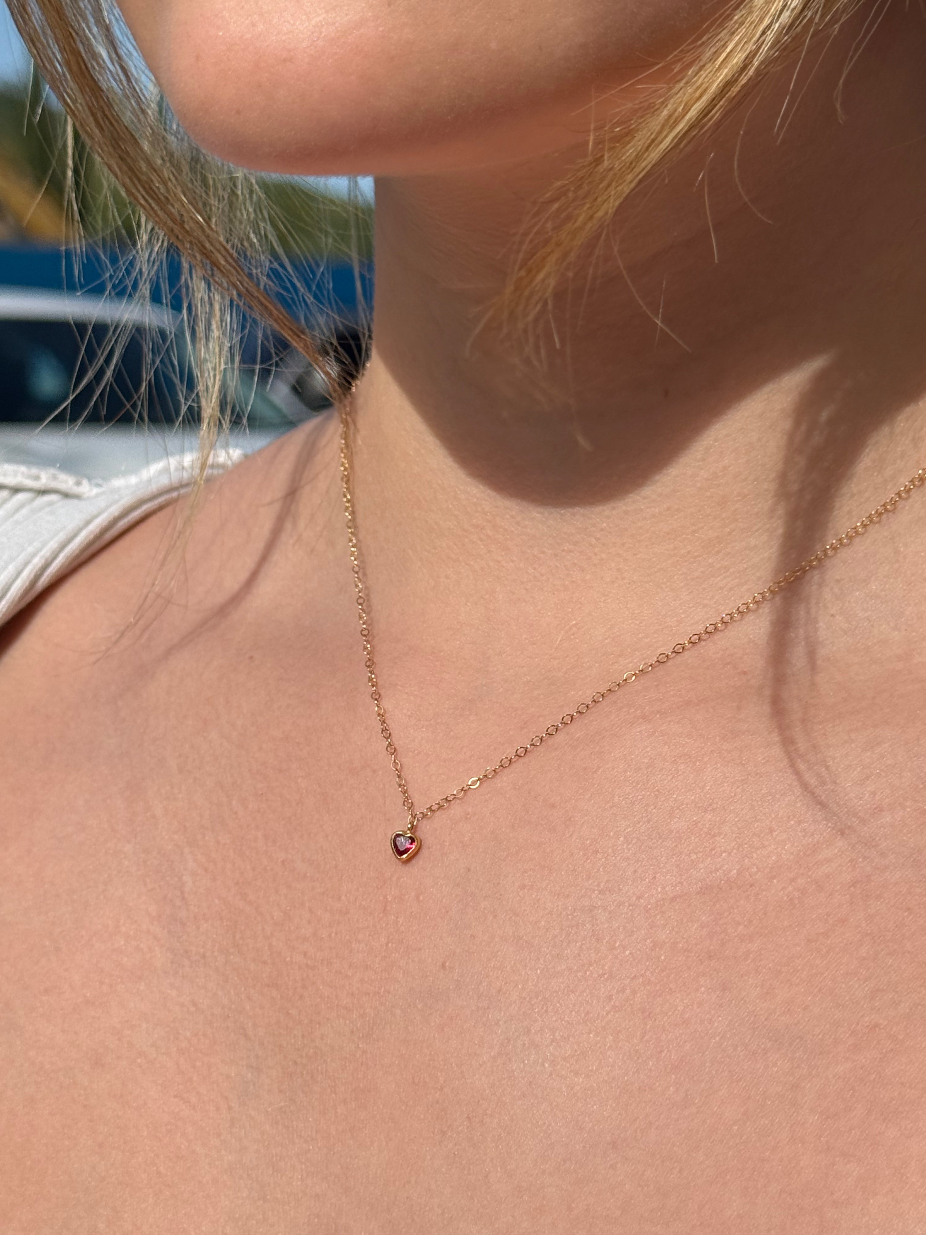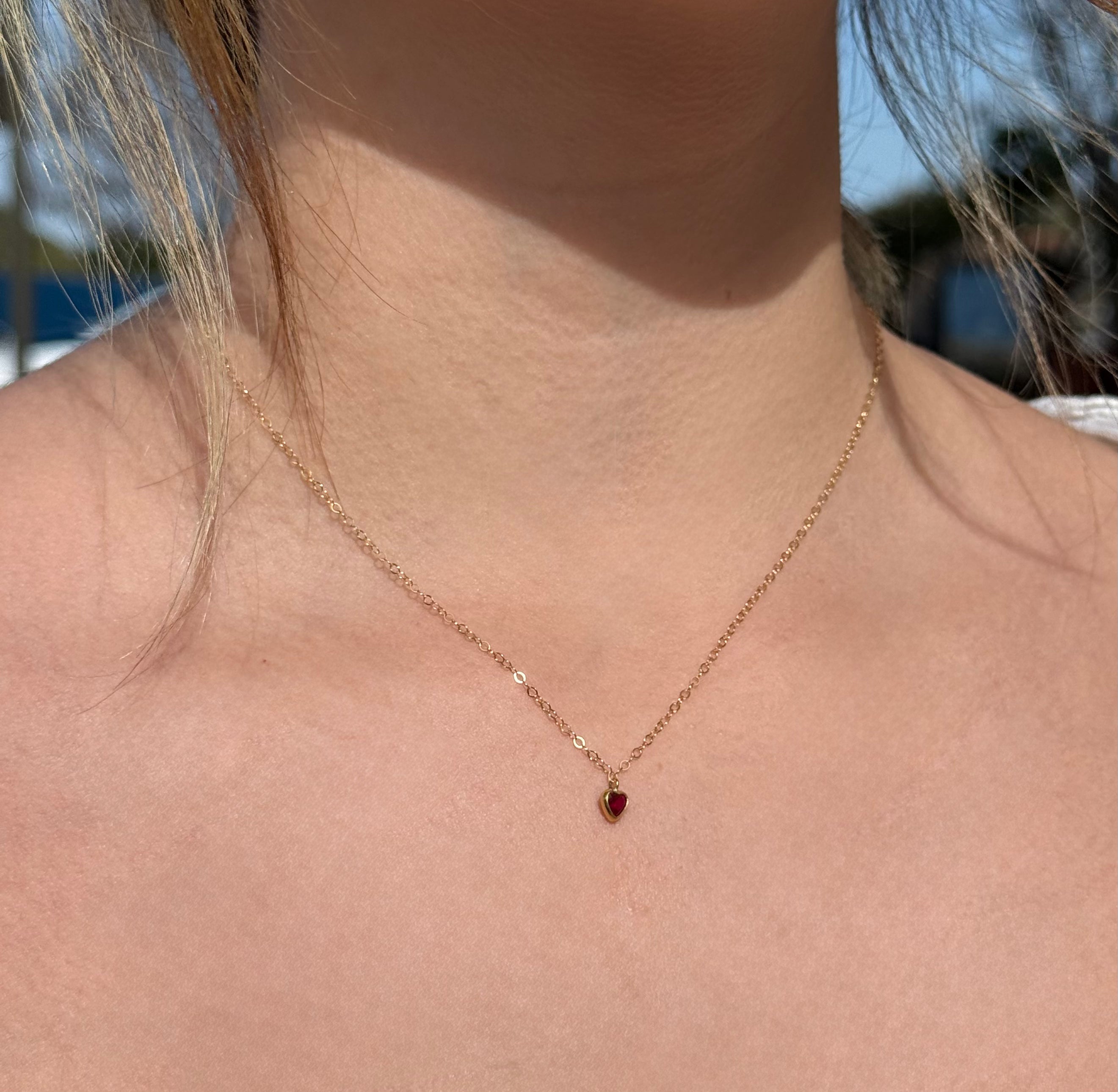 14k gold filled Birthstone Heart Necklace - NON tarnish - Hypoallergenic Gold necklace for Woman - Size 16-18 inches