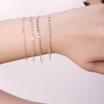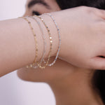 Our permanent jewelry is crafted from 14K gold-filled or sterling silver, designed for daily wear, waterproof, and backed by a lifetime guarantee.
