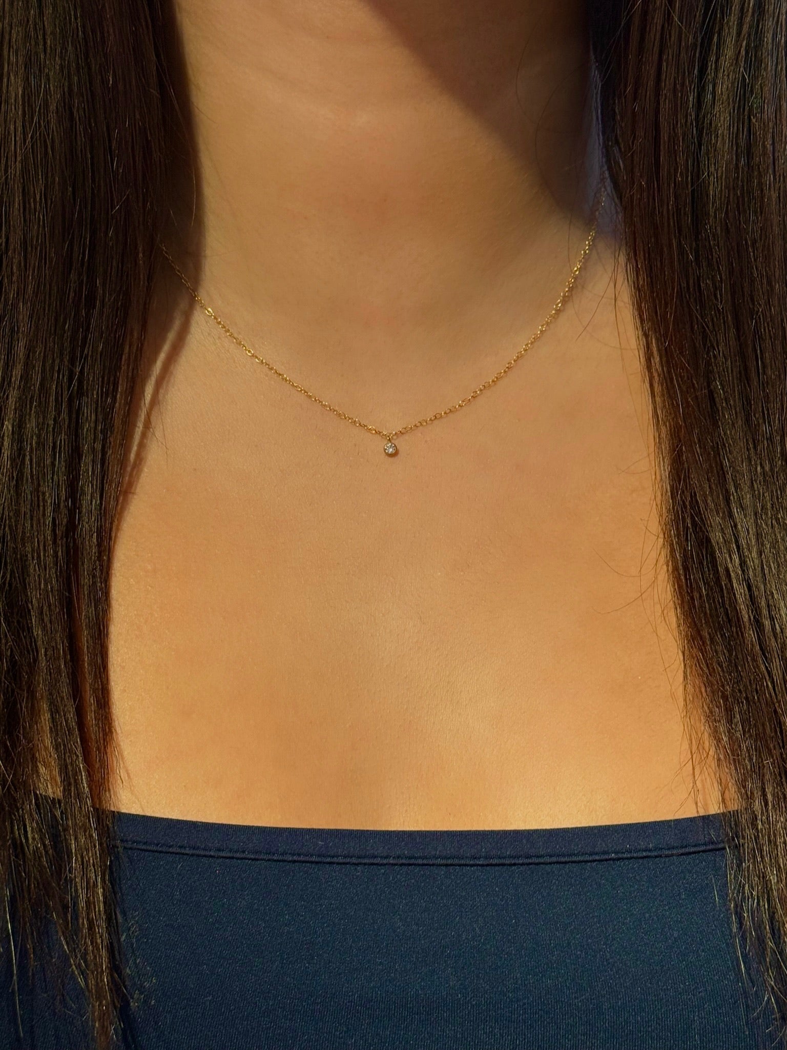 Dazzle with understated elegance in our Little Bezel Necklace, a delicate adornment that captures the essence of refined simplicity.