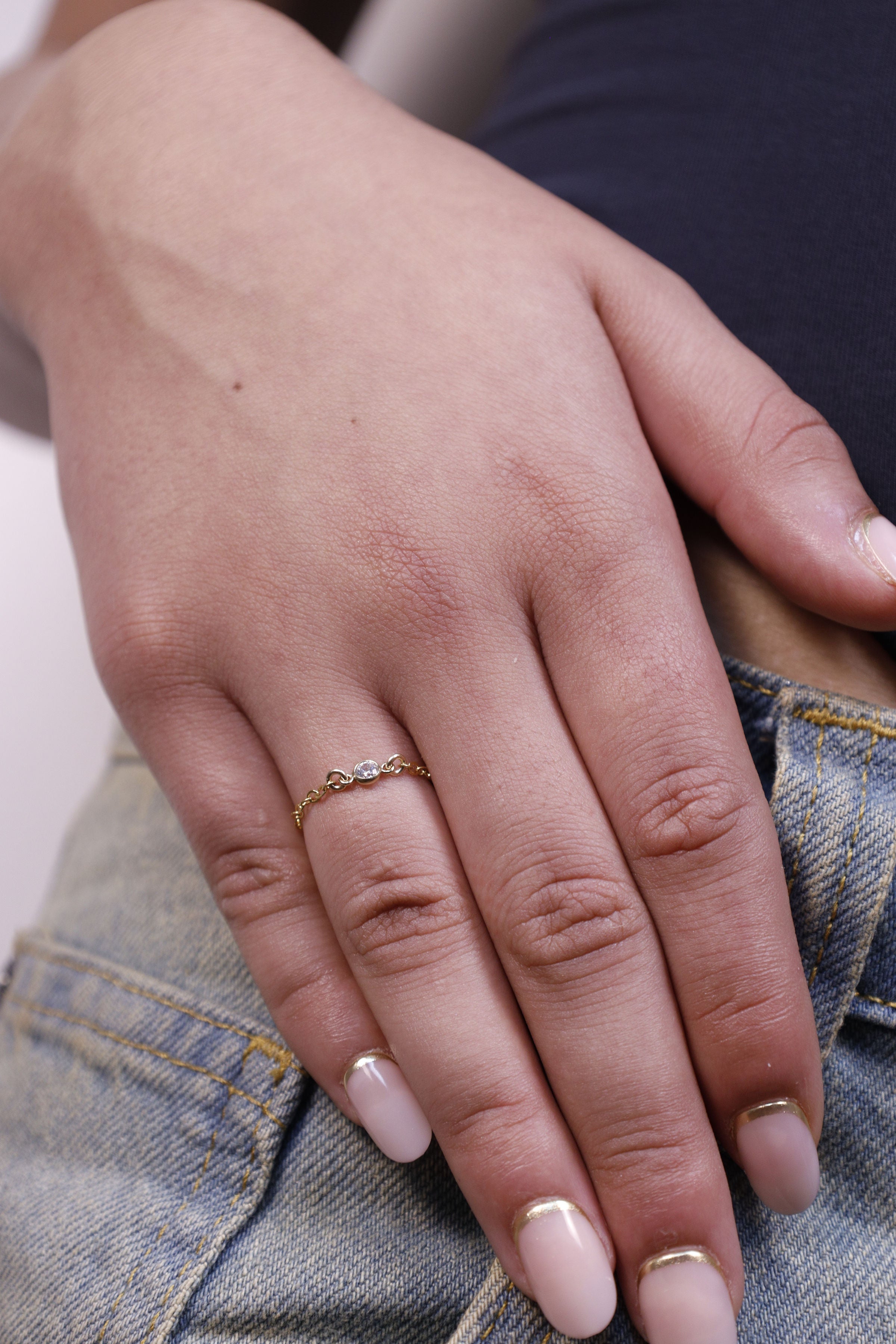 The perfect minimalistic ring with a touch of sparkle. Dress up your look with the Mini Chain Clear Bezel Ring. Whether worn alone or stacked with other rings, this minimal ring will look stunning regardless!