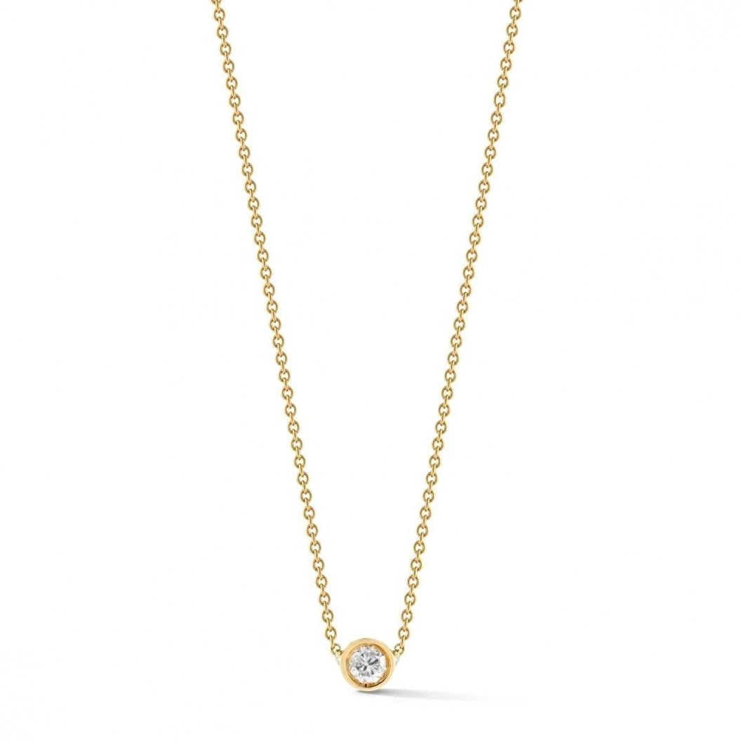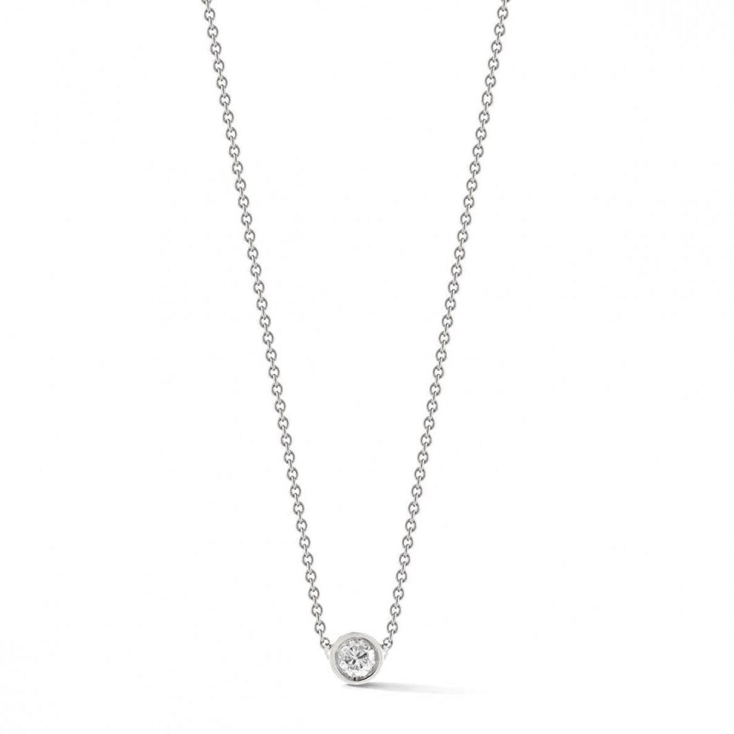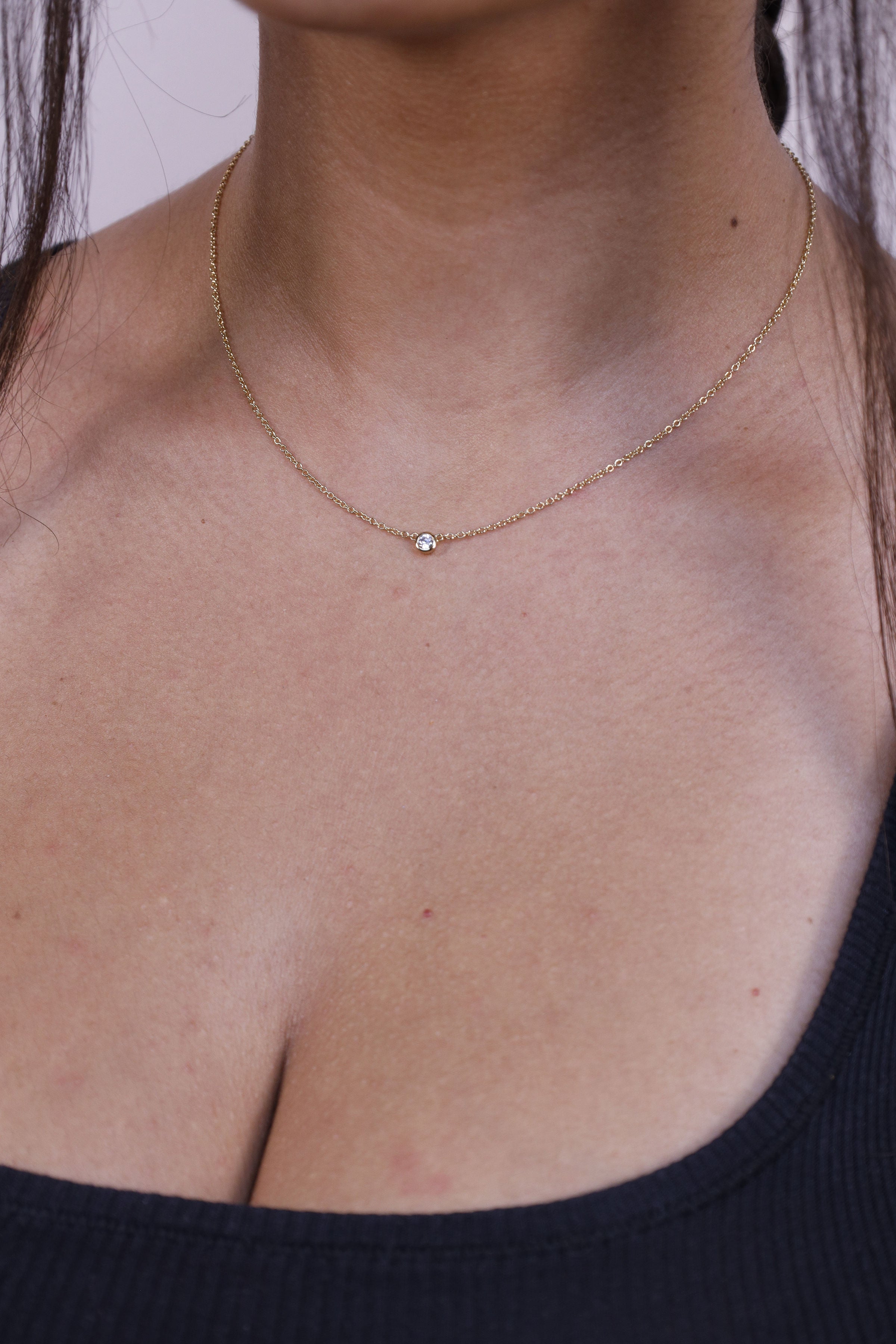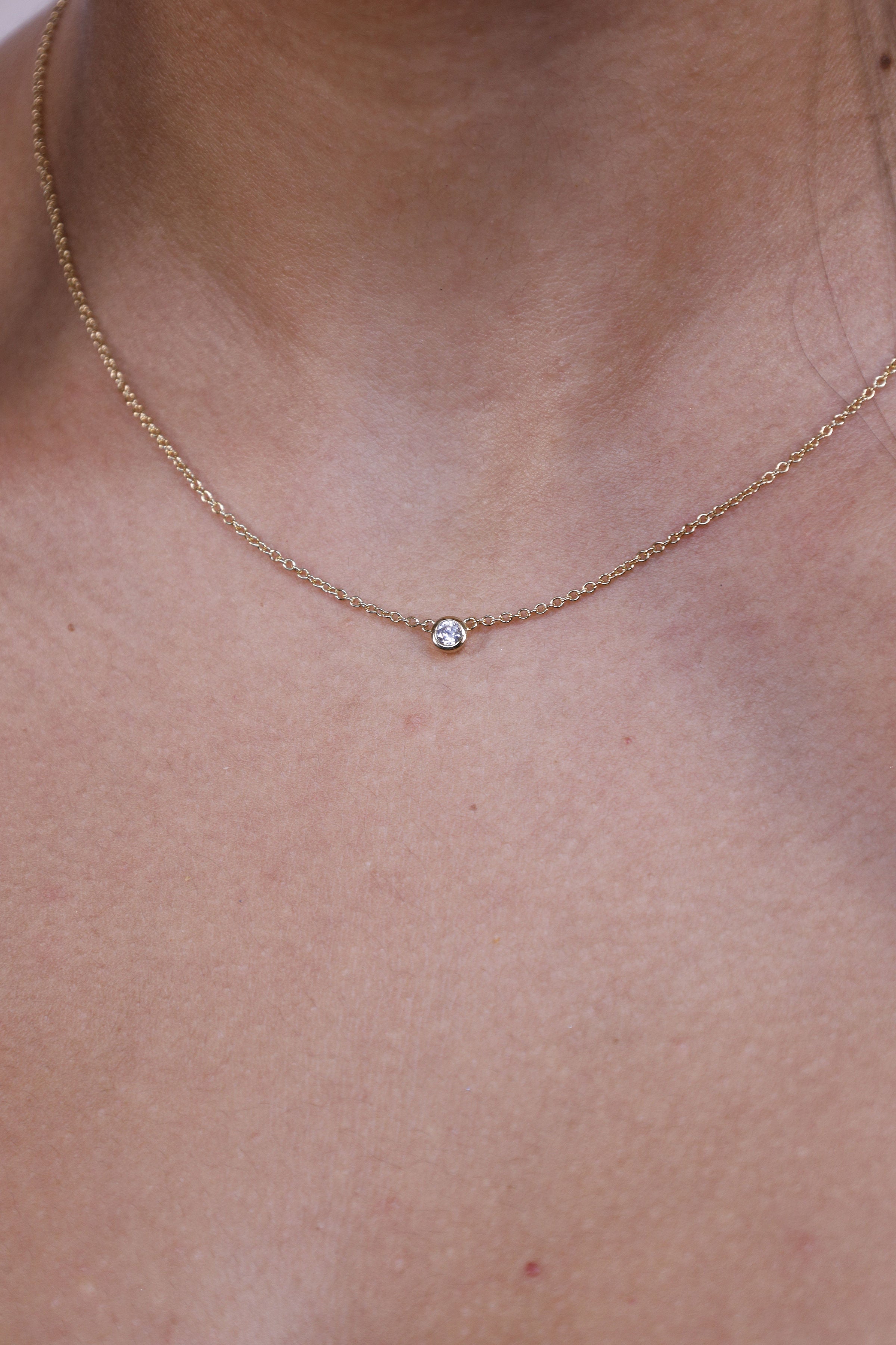 Minimal yet elegant, sparkling bezel cubic zirconia solitaire necklace.
