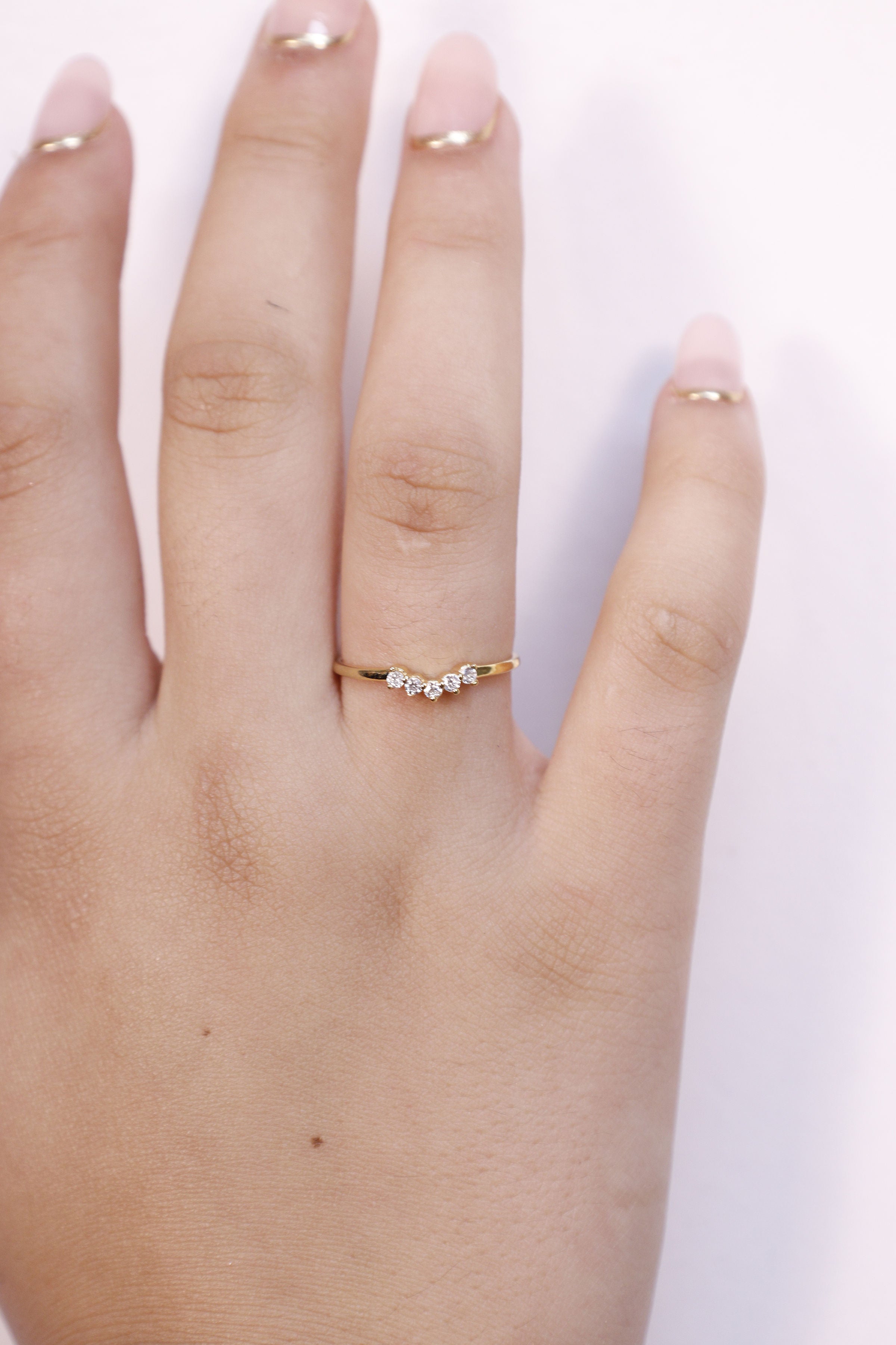 A subtle and minimal paved chevron ring that elevates your ring stack.