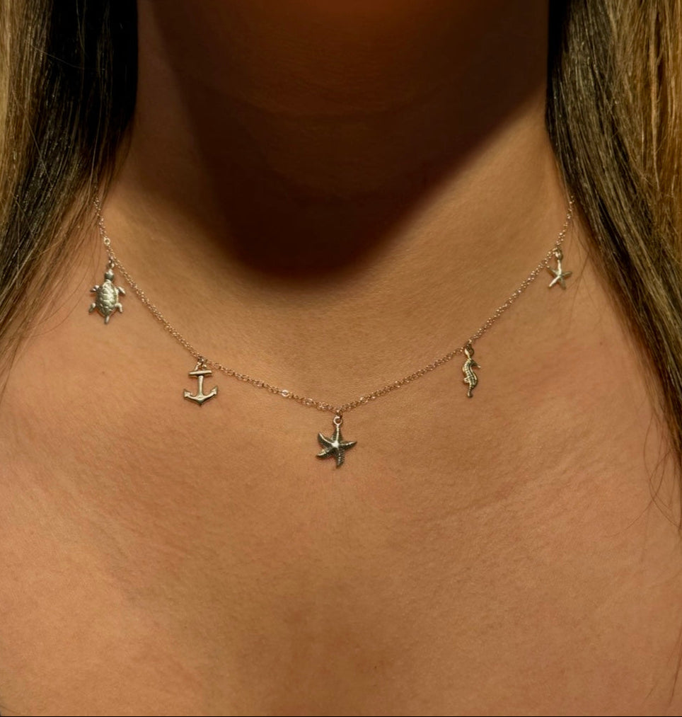 The Ocean Babe necklace is the perfect mix of coastal charm and everyday sparkle. Featuring a collection of dainty ocean-inspired charms including a starfish, anchor, turtle, and more. This necklace brings a soft, beachy vibe to any look. It’s playful, feminine, and effortlessly cute, making it the ideal piece for ocean lovers or anyone craving a little seaside magic in their everyday style.