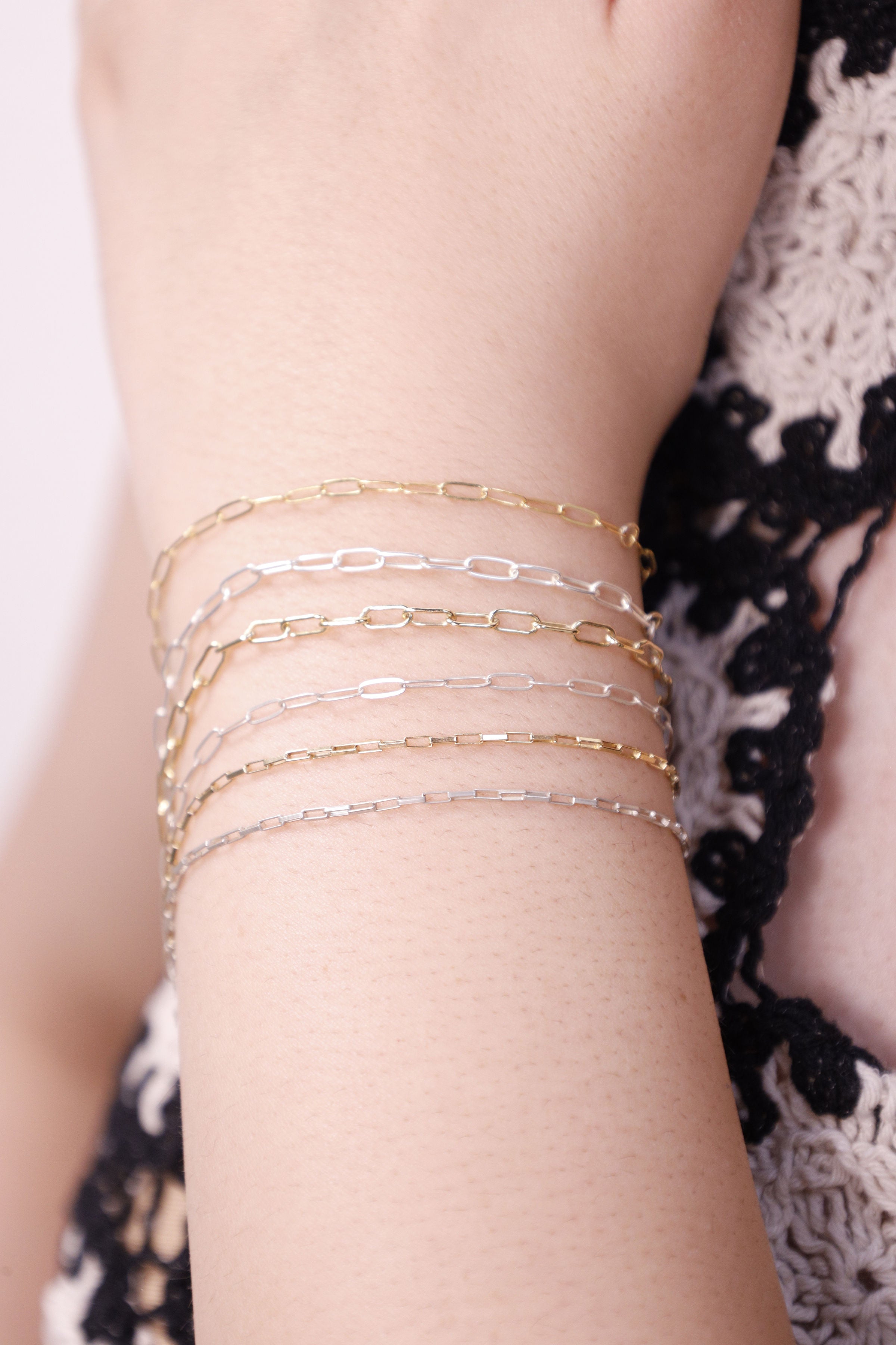 Our permanent jewelry is crafted from 14K gold-filled or sterling silver, designed for daily wear, waterproof, and backed by a lifetime guarantee.